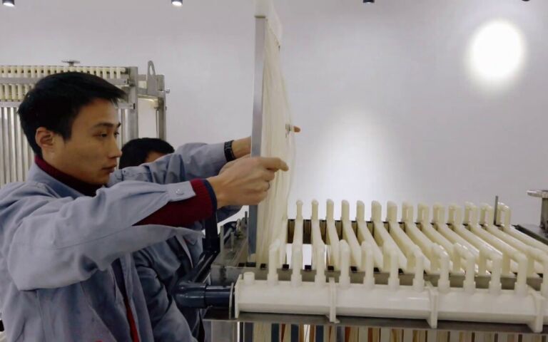 The ZeeLung is a typical modular system where the modules, 844 x 52 x 2198 mm high, are fitted into a cassette. Each module provides an effective membrane area of 40 m2. The membrane area per module footprint is then 911 m2 membrane per m2 floor area.